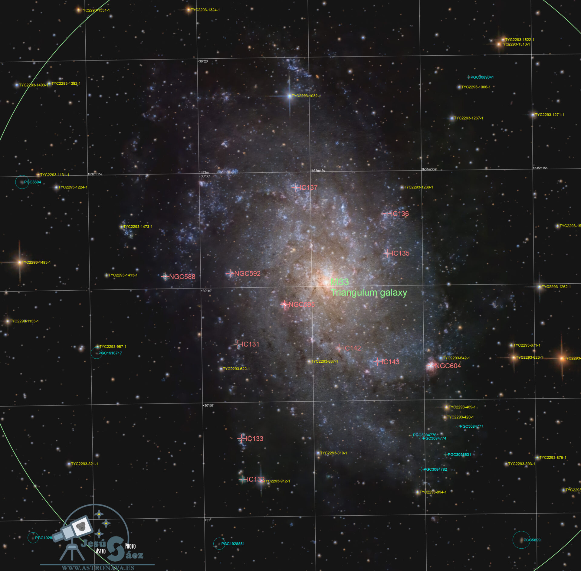 La Galaxia del Triángulo, también conocida como M33 o NGC 598, es una galaxia espiral localizada en la constelación del Triángulo. Fue descubierta por el astrónomo italiano Giovanni Battista Hodierna antes de 1654. Esta galaxia es la tercera más grande del Grupo Local, que incluye a nuestra Vía Láctea y a la Galaxia de Andrómeda.